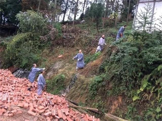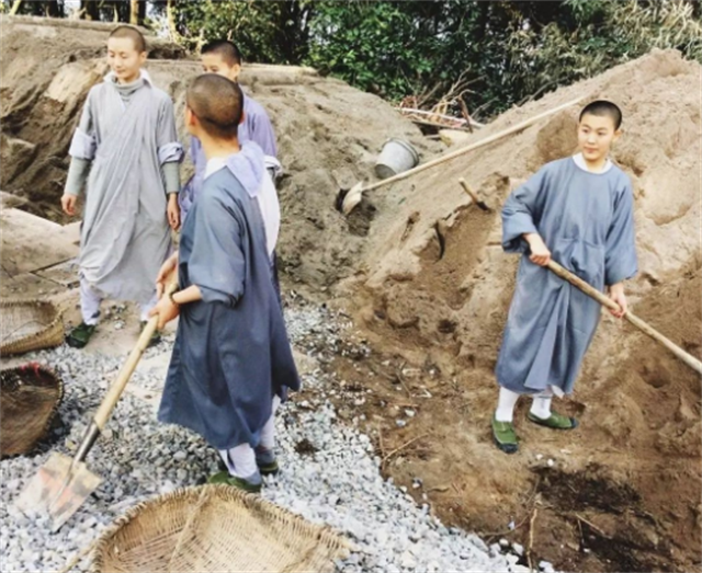 在「功課」之餘,仁卿法師就帶著這近30名學霸,每天上上下下地穿梭于山路上修路。