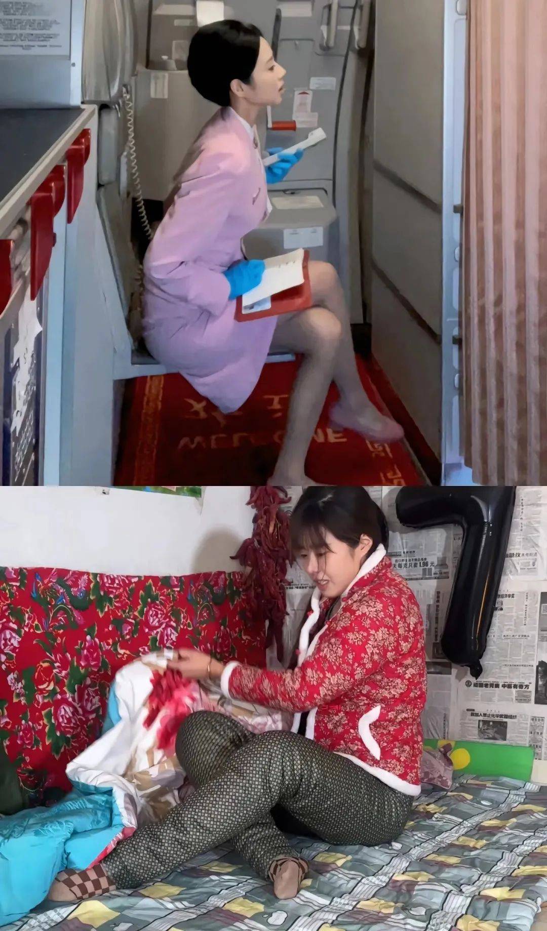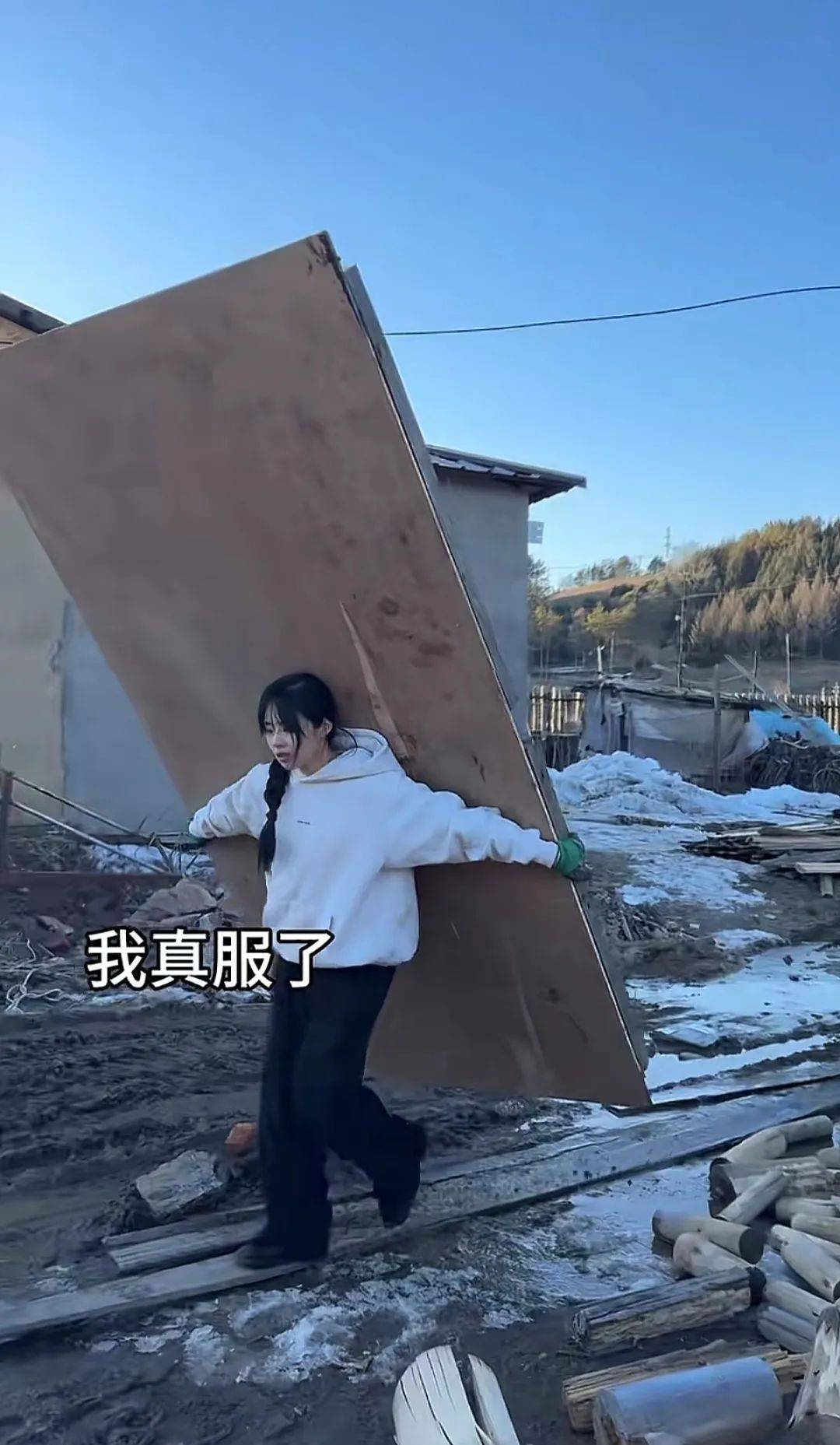 以前當空姐的時候,幫客人搬行李練出來的肌肉,現在都用在了扛柴火、扛糧食、扛木板上。