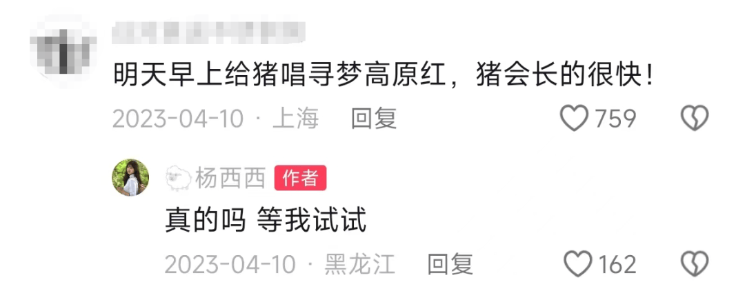 「明天早上給豬唱尋夢高原紅,豬會長得很快」