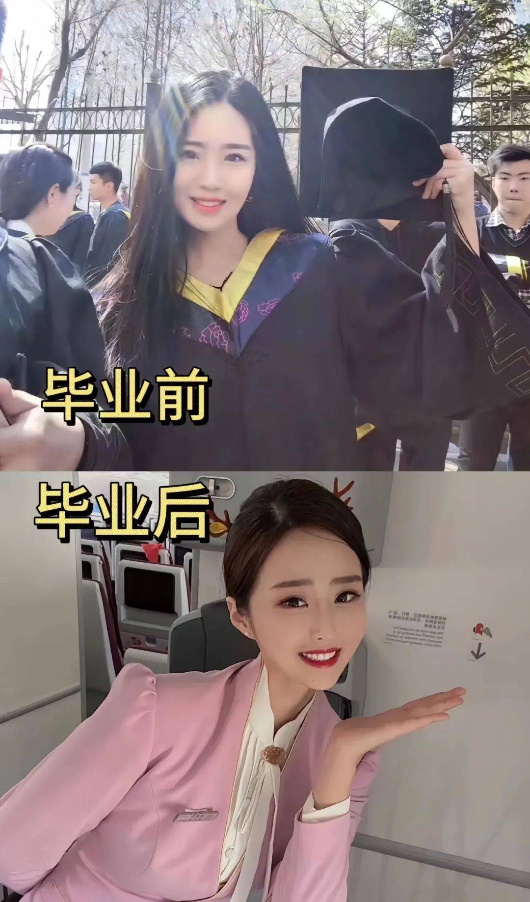 長大後的楊西西順利考入大學,成為一名空乘專業的大學生。