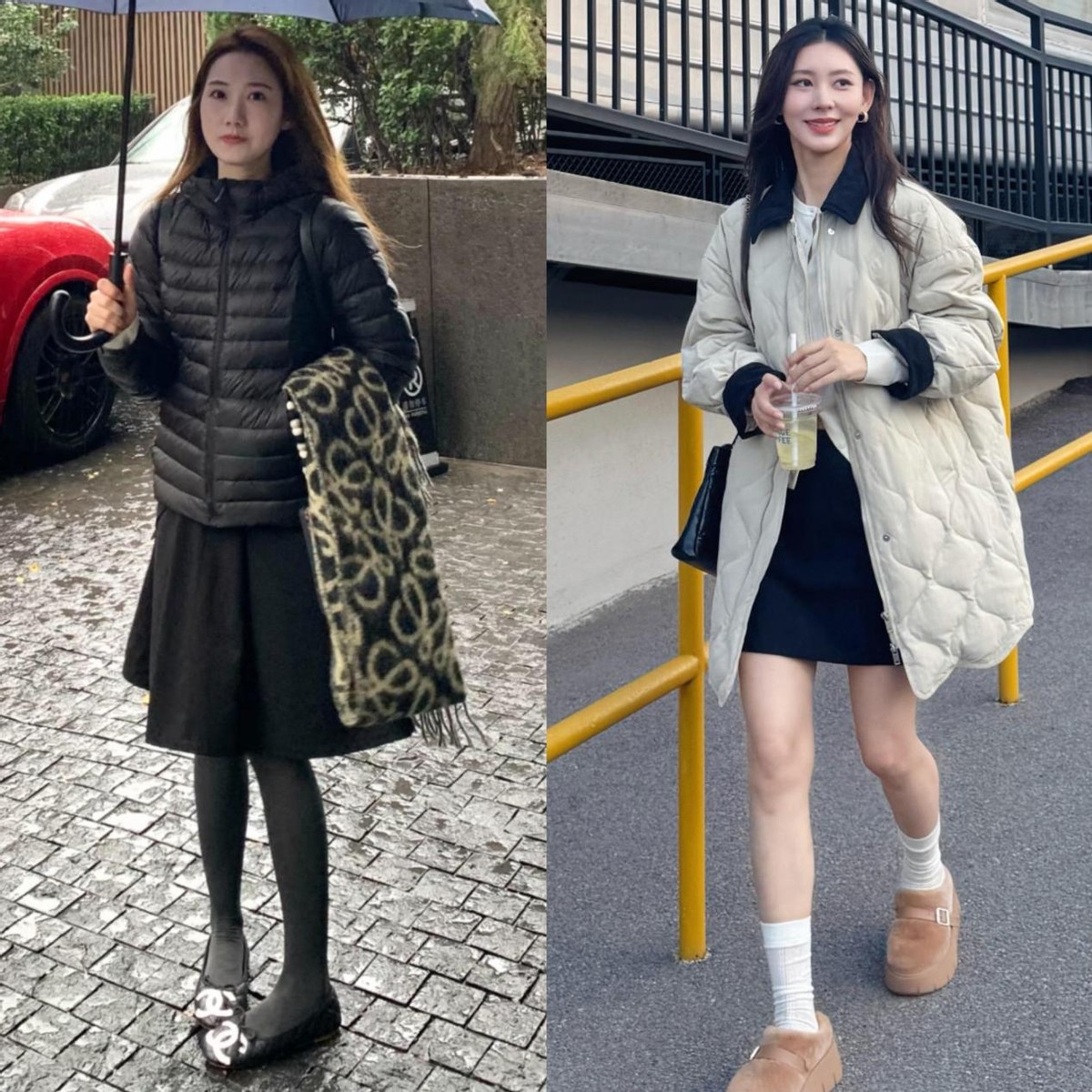 ②奶奶棉服搭配裙子,短裙俏皮,長裙文藝